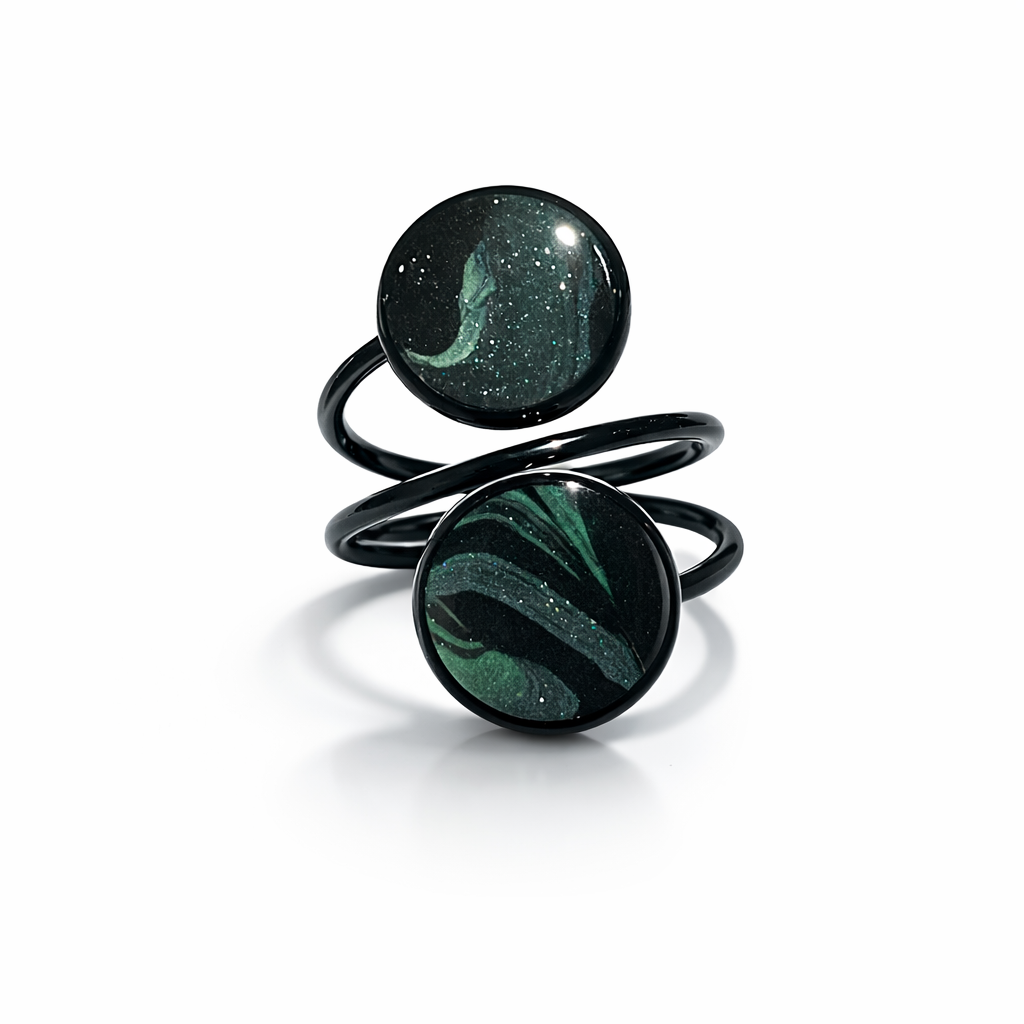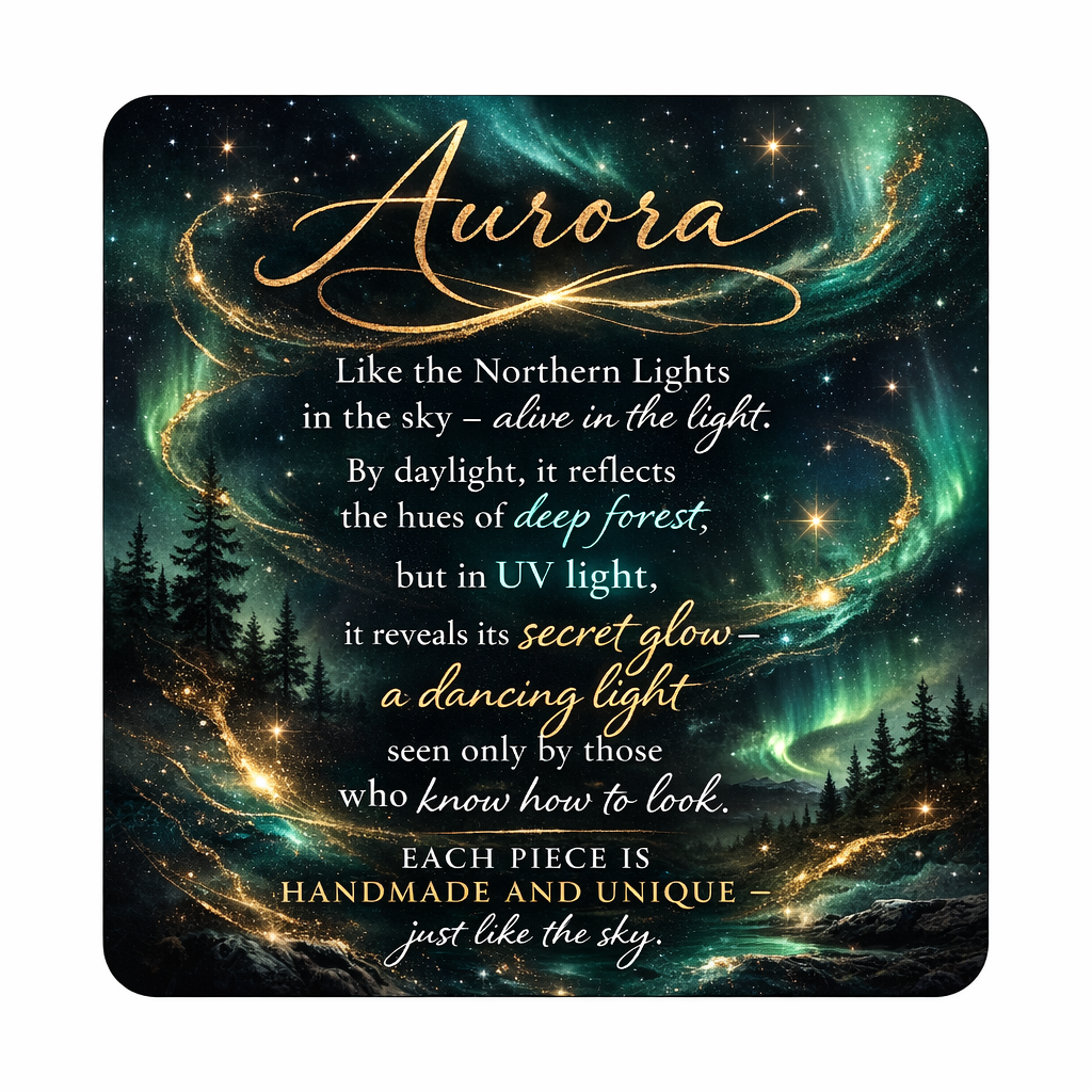 AURORAsormus on saanut inspiraationsa revontulien mystisestä tanssista pohjoisella taivaalla. Jokainen sormus on yksilöllinen. Sormus toimitetaan kauniissa korurasiassa. Hohtaa UV valossa. Allergiaystävällinen ruostumaton teräs.