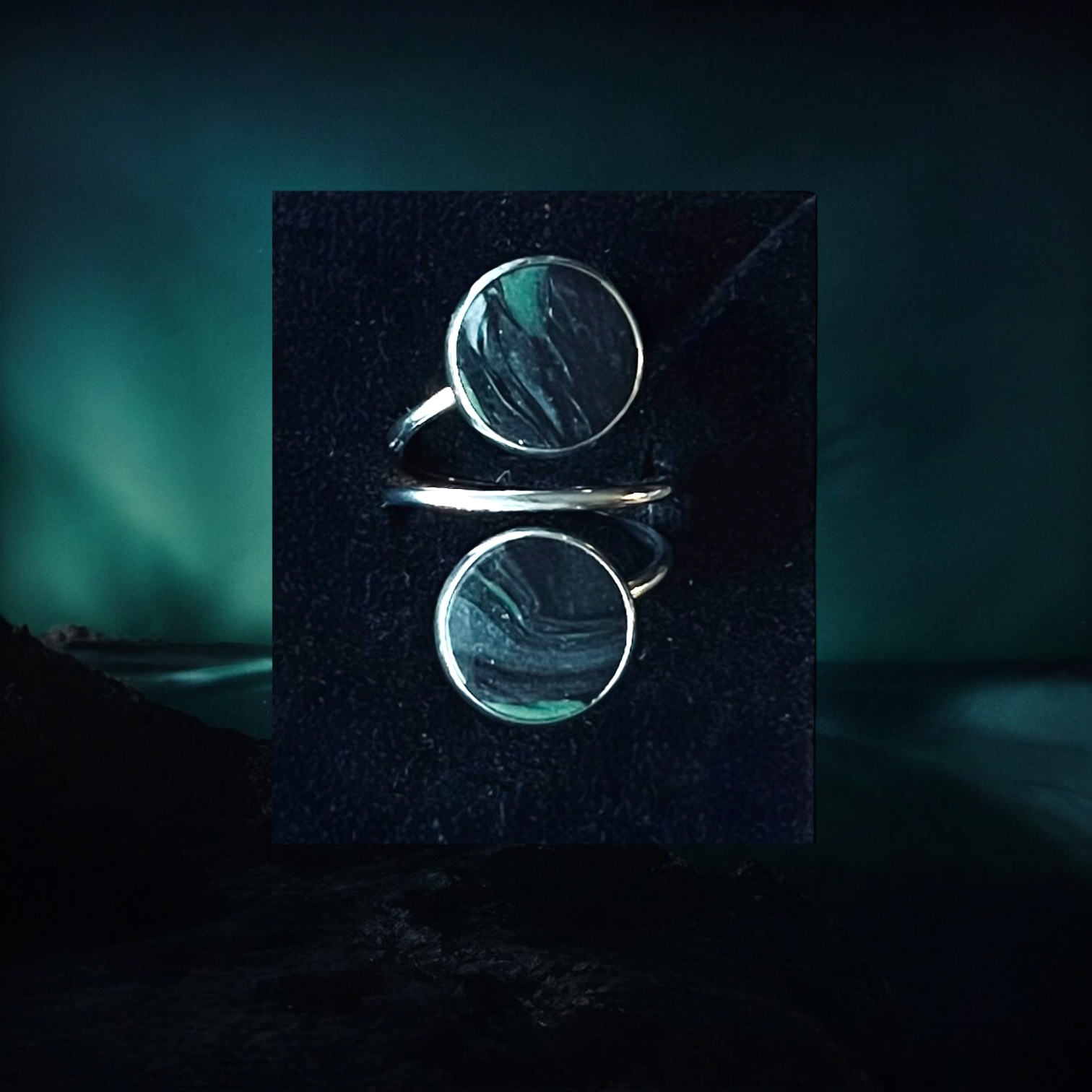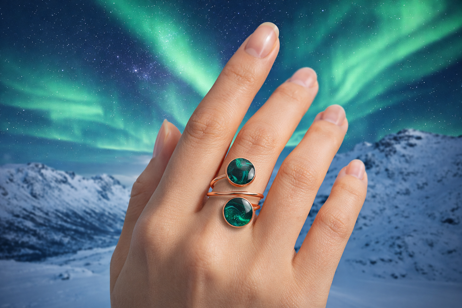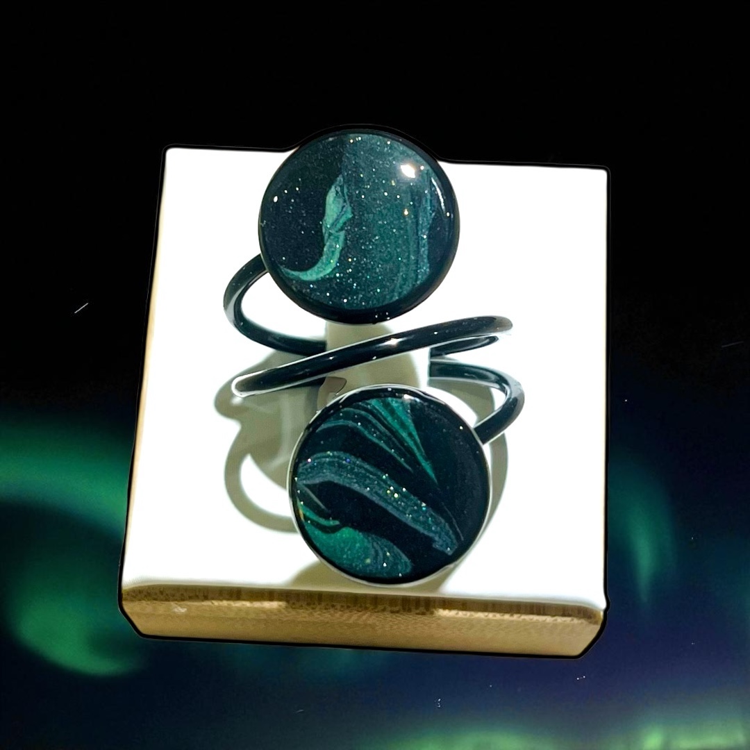 AURORAsormus on saanut inspiraationsa revontulien mystisestä tanssista pohjoisella taivaalla. Jokainen sormus on yksilöllinen. Sormus toimitetaan kauniissa korurasiassa. Hohtaa UV valossa. Allergiaystävällinen ruostumaton teräs.