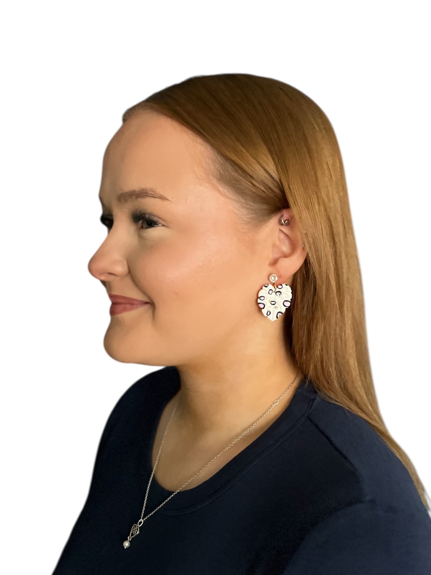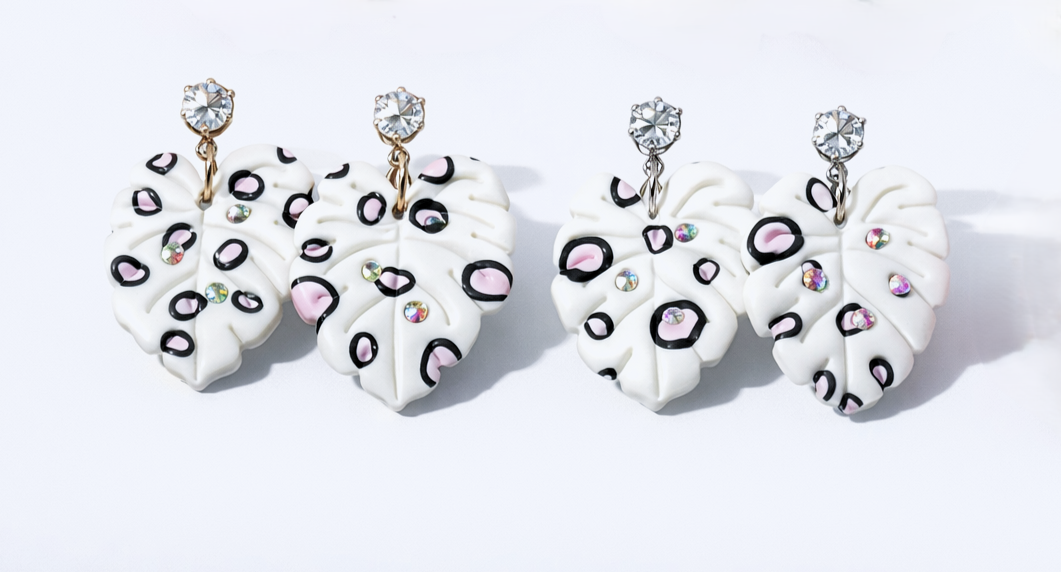 Nämä pienet peikonlehti-korvakorut ovat täydellinen yhdistelmä herkkyyttä ja näyttävyyttä. Saatavana valkoisena sekä pinkkinä. Korujen kuviointi yksilöllinen. Mukana MIGIAn korurasia.
