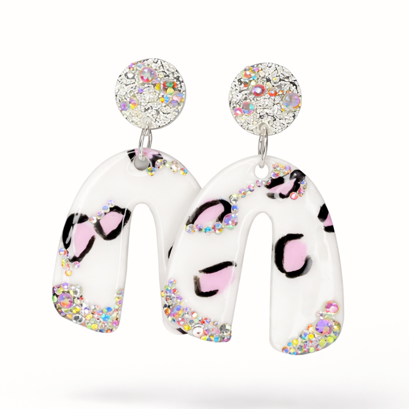 Säihkyvät pinkit U-mallin korvakorut, jotka ovat tehty erottumaan. Kuvioinneissa sekä timanteissa yksilöllisiä eroja, jokainen pari valmistetaan käsityönä. Erittäin kevyet ja miellyttävät käyttää. Mukana MIGIAn korurasia.